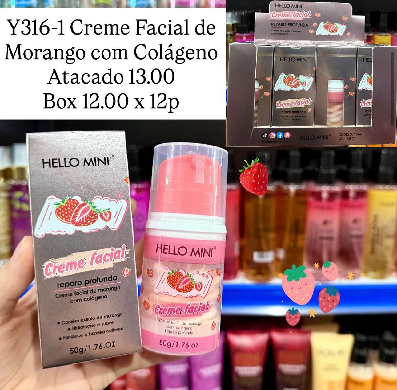 Creme Facial de Morango Com colágeno Hello Mini