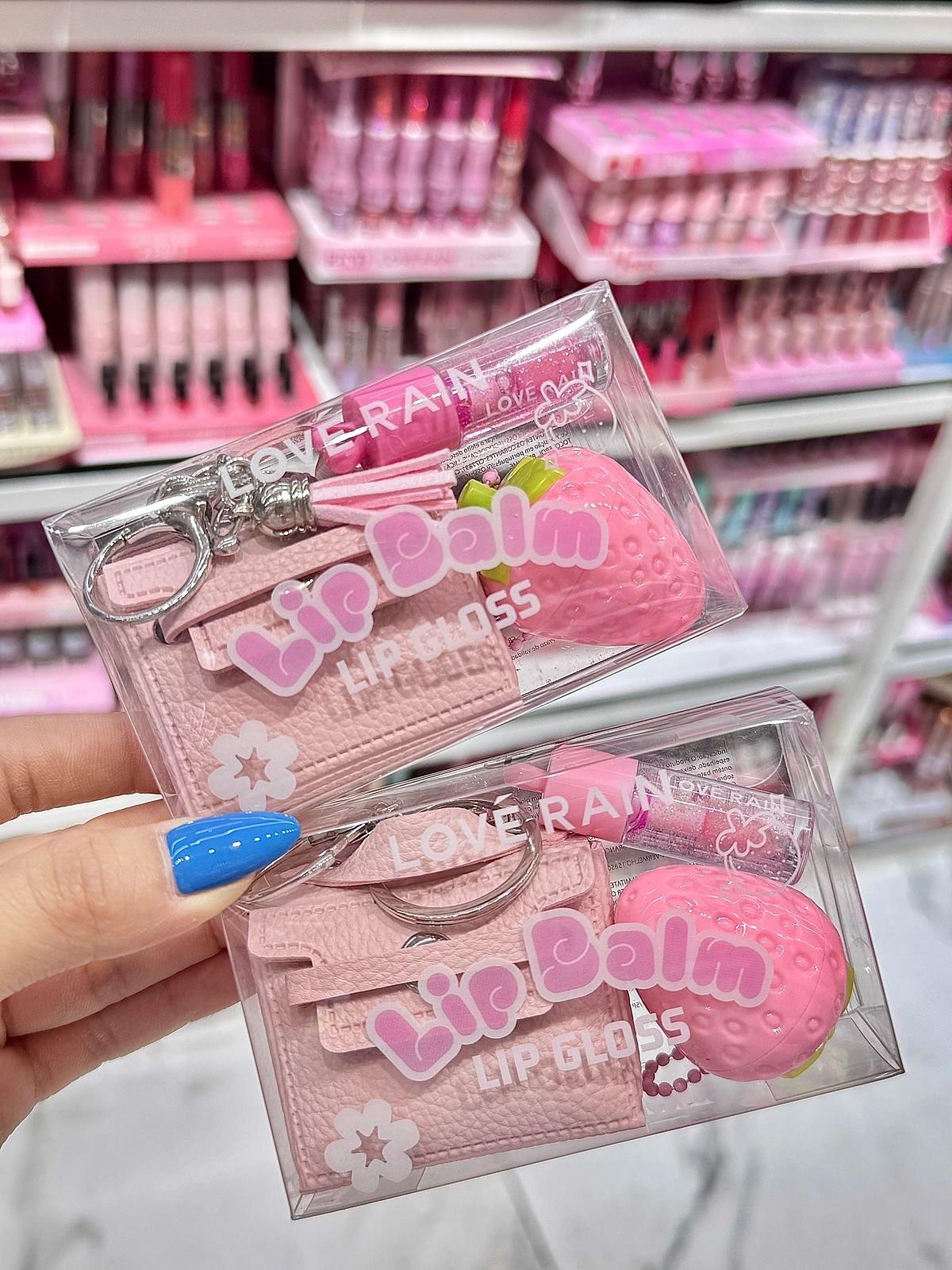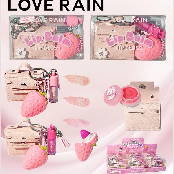 Lip Gloss e balm com bolsinha love Rain