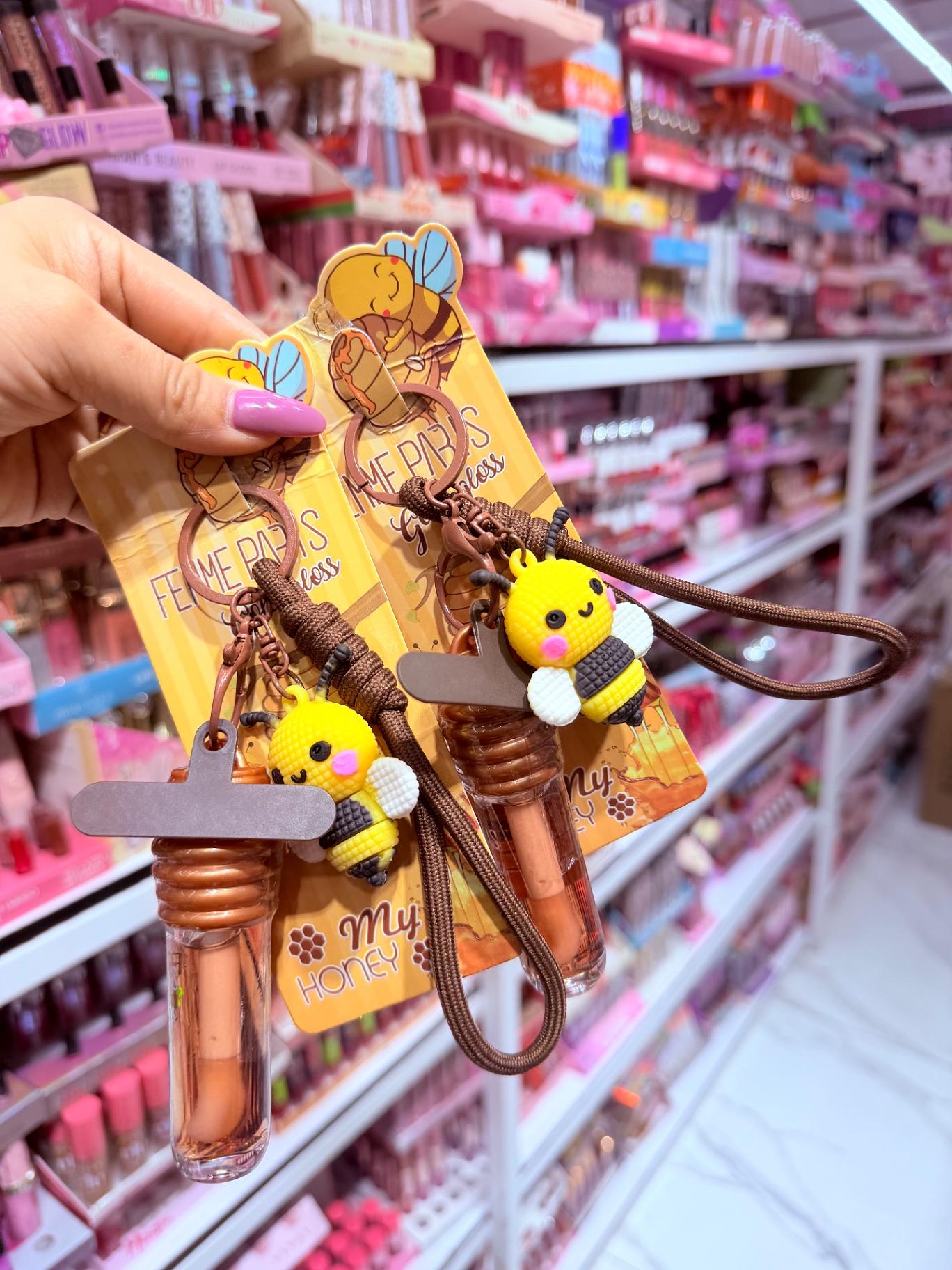 Lip gloss Honey com chaveiro e Acessórios de celular Femme Paris